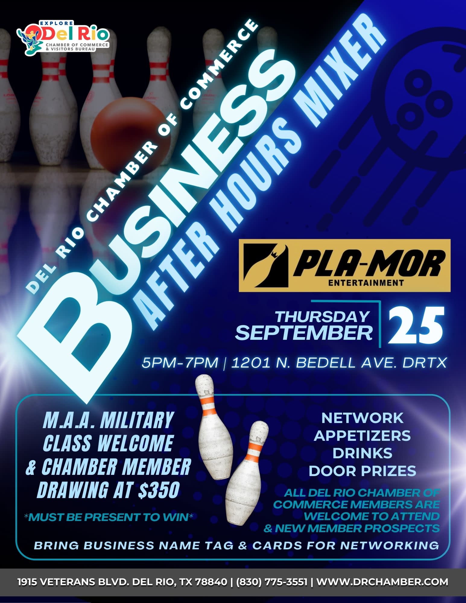 Have a fun relaxed evening networking with other business leaders in Del Rio, TX during our Business After Hours Mixer in September at PLA-MOR Entertainment.