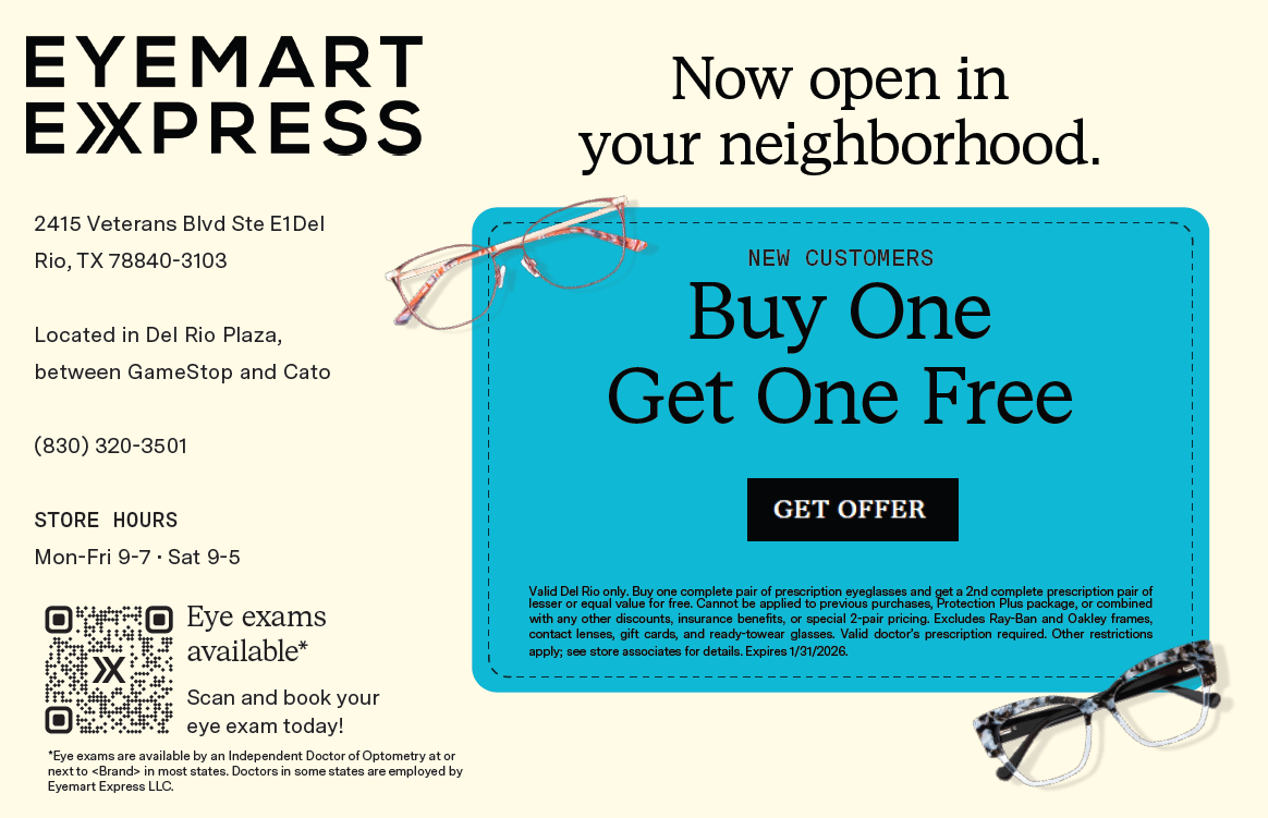 We are excited to welcome new business, Eyemart Express to Del Rio with a Grand Opening Celebration and Ribbon Cutting. More details to be announced.
