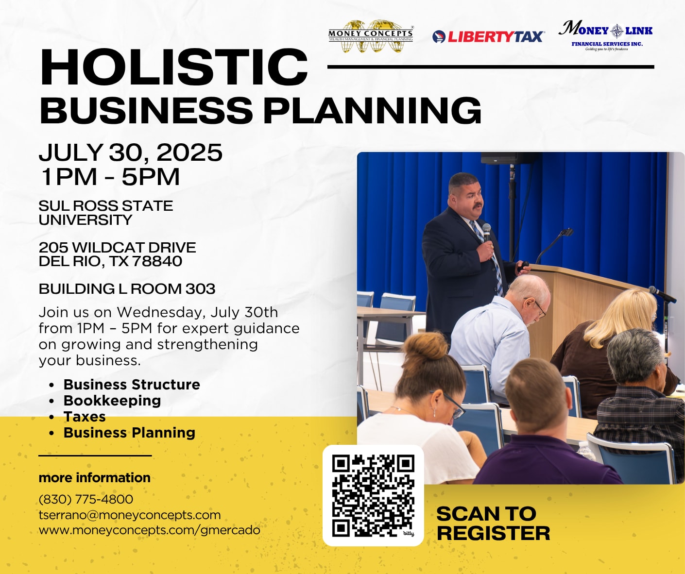 Join us on Wednesday, July 30th from 1PM - 5PM for expert guidance on growing and strengthening your business. Topics include business structure, bookkeeping, taxes, and business planning. Click the link below to register! https://forms.gle/mdEorGi3pi4ESUTe8