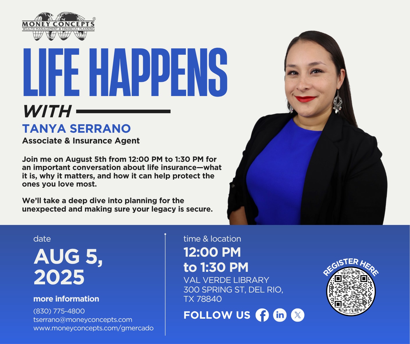 Join Tanya on August 5th from 12:00 PM to 1:30 PM for an important conversation about life insurance—what it is, why it matters, and how it can help protect the ones you love most. We’ll take a deep dive into planning for the unexpected and making sure your legacy is secure. Feel free to invite a friend or family member who could benefit from this conversation—we welcome all who want to learn and plan for a more secure future! Click the link to register https://forms.gle/SsqDFXW3NpjQJBJj9