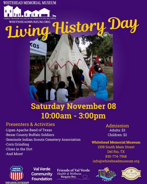 Experience history come to life with fascinating presentations from the Lipan Apache Tribe of Texas, the Bexar County Buffalo Soldiers, and the Seminole Indian Scouts Cemetery Association.