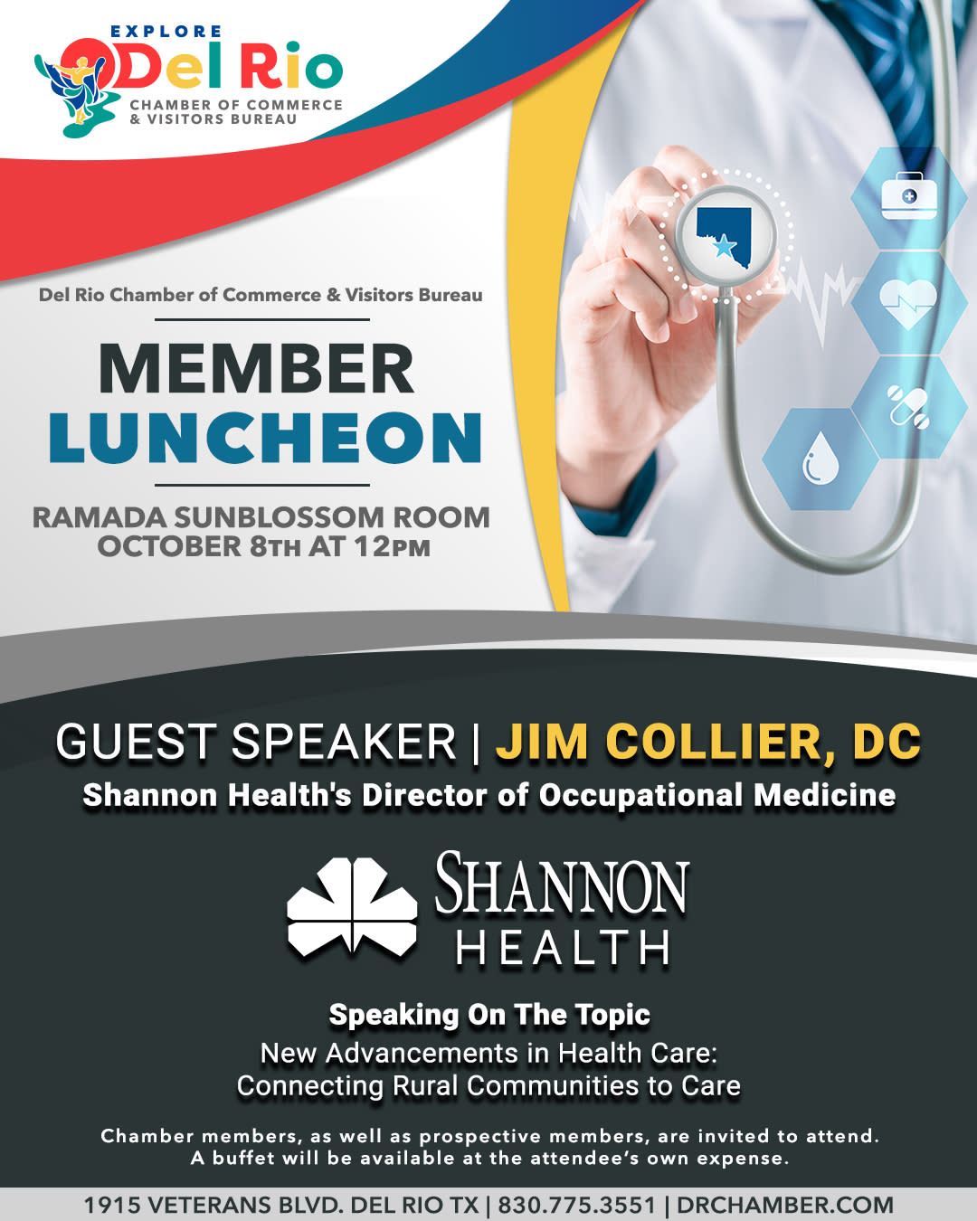 Join us for our Member Luncheon with special guest Jim Collier DC, Shannon Health's Director of Occupational Medicine