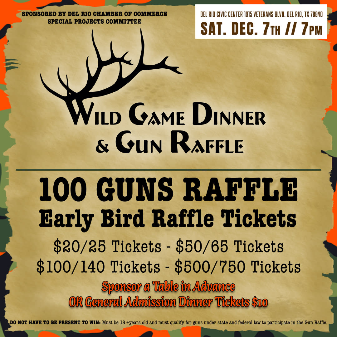 - Wild Game Dinner Tickets - $10 -Gun Raffle Tickets