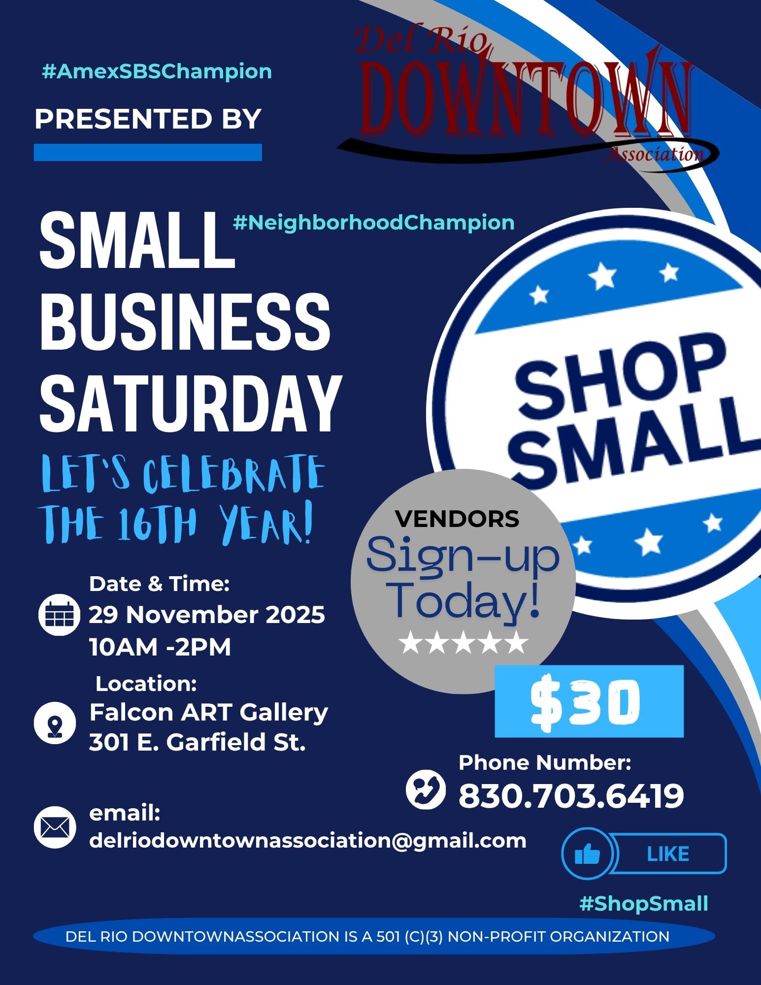 16th year Small Business Saturday Sacred Heart Parish Vendor Entry $35 Presented by Del Rio Downtown Association